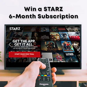 ENTER NOW to win a 6-Month STARZ Subscription! Enter before sweepstakes ends 7/26.
