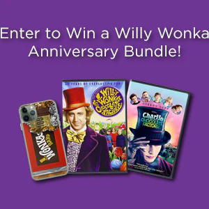 Enter now to win One (1) ‘Willy Wonka & the Chocolate Factory’ & ‘Charlie & The Chocolate Factory Movie Double Feature Set PLUS one (1) Wonka Chocolate Bar Cell Phone Case!