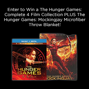 Enter now to win One (1) The Hunger Games: Complete 4 Film Collection PLUS one (1) The Hunger Games: Mockingjay Microfiber Throw Blanket (50“ x 40”)!