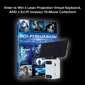 Enter now to win One (1) Laser Projection Virtual Keyboard, AND One (1) Sci-Fi Invasion 10-Movie Collection!